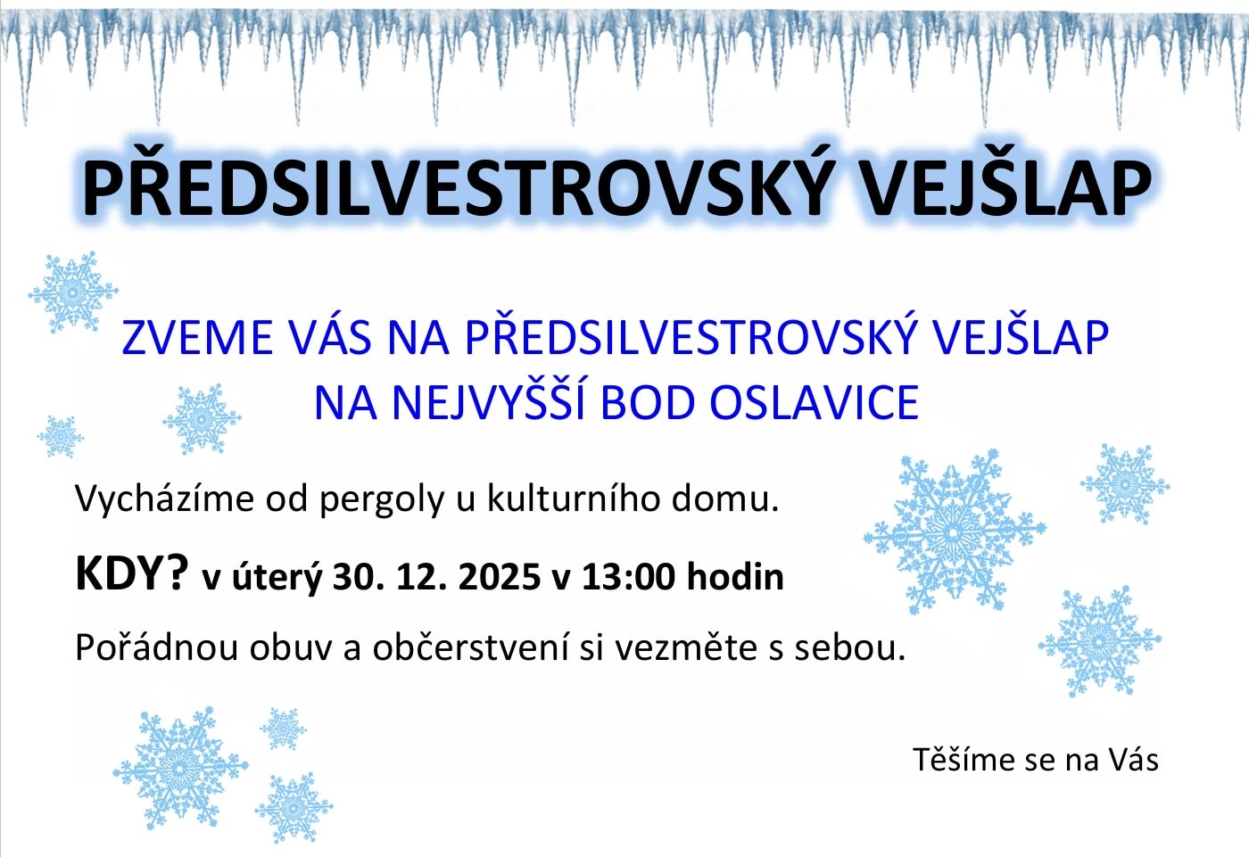 Pozvánka na předsilvestrovský vejšlap 30.12. 2025 ve 13:00